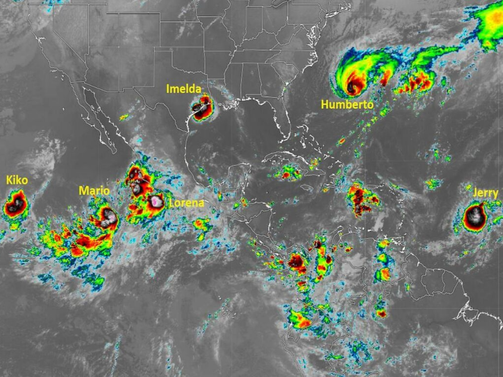Esta semana, os furacões Humberto (categoria 3) e Lorena (Categoria 1) causaram danos nas Bahamas e no México, respectivamente. Além dos furacões, as tempestades tropicais Kiko, Mario e Jerry e a depressão Imelda estão ativas neste momento no Pacífico leste e Atlântico Norte.