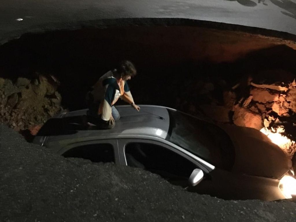 O mesmo ocorreu na cidade de Taubaté, em São Paulo, onde as fortes chuvas de domingo resultaram na abertura de uma cratera no meio da Rua Juca Esteves as 20h, engolindo um carro que passava. A motorista, uma senhora de 54 anos, passou cerca de uma hora esperando por socorro e teve ferimentos leves.