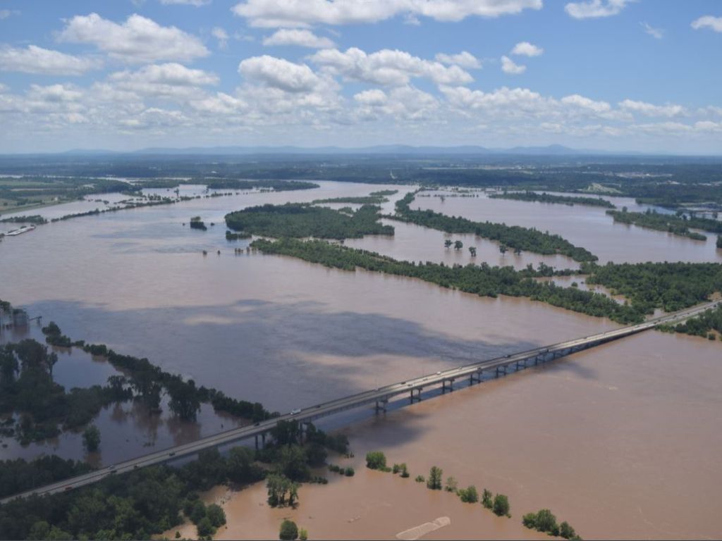 O Rio Arkansas, em Pendleton, Arkansas, atingiu o recorde de inundação de 10,4 metros no sábado e a previsão indica que ele ultrapassará a marca de 11 metros nessa semana. O Rio Mississipi, próximo a Quincy, chegou ao nível de 9,5 metros, 30 centímetros abaixo do recorde histórico. Em Dardanelle, o Rio Arkansas ultrapassou seu recorde histórico na sexta-feira, chegando ao nível de quase 14 metros.