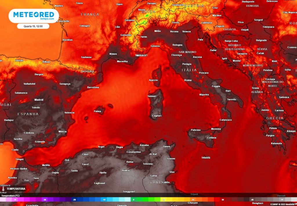 No domingo (16), alertas vermelhos de calor foram emitidos em 16 cidades da Itália, país que deverá registrar as mais altas temperaturas da Europa. Aliás, o recorde de temperatura mais alta registrada na Europa, de 48.8ºC, pertence à região italiana da Sicília, registrada em agosto de 2021. Os meteorologistas acreditam que essa temperatura poderá ser superada nos próximos dias, principalmente na ilha italiana da Sardenha.
