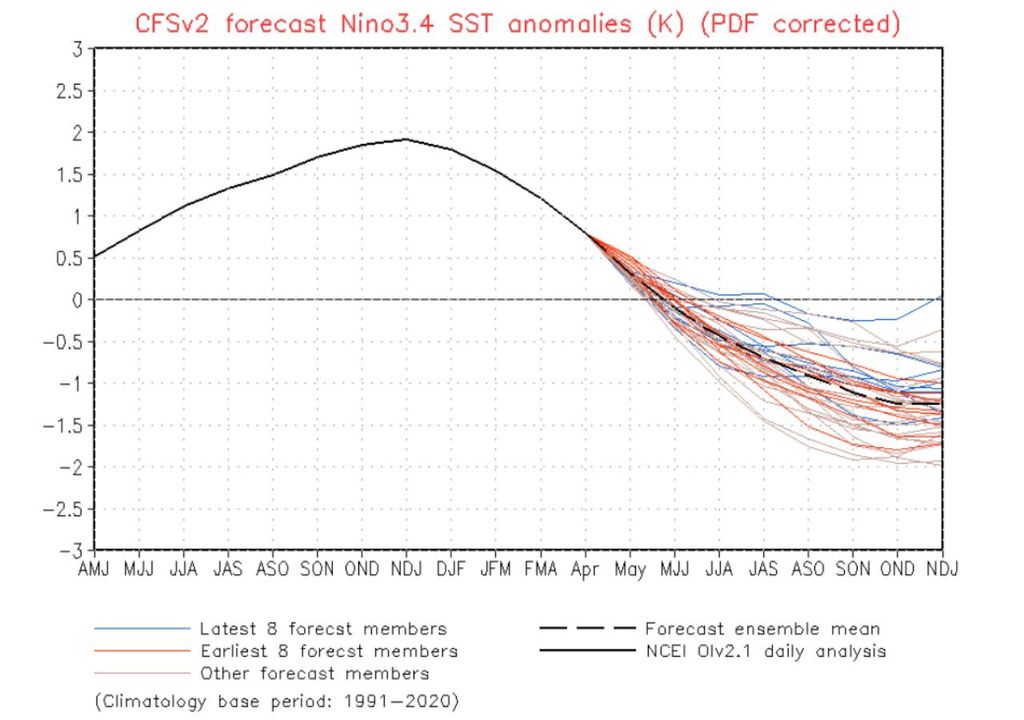 A La Niña vai demorar meses até se desenvolver e se consolidar oficialmente, isto porque é necessário a permanência das anomalias negativas, abaixo de -0.5°C, por pelo menos 3 meses. Ou seja, os modelos indicam que a La Niña surgirá no segundo semestre deste ano e com intensidade fraca a moderada, porém, os seus impactos mais significativos no clima do Nordeste deverão ser sentidos entre o final de 2024 e início de 2025.