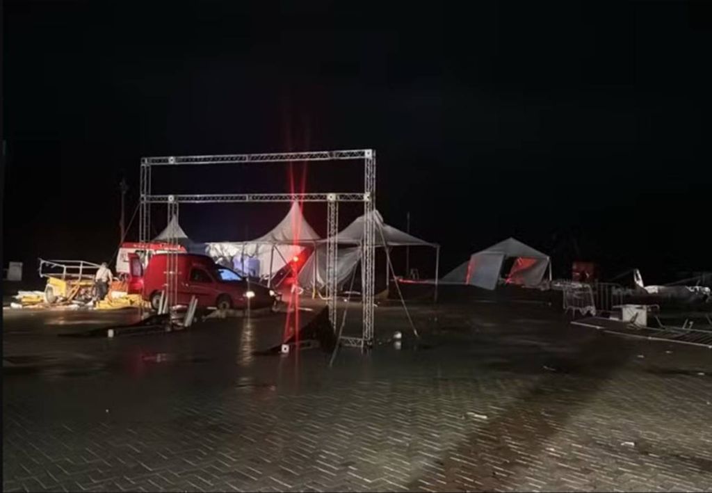 Segundo a Defesa Civil de São Paulo, em Peruíbe, no litoral sul, a estrutura de uma tenda desabou (imagem no início desta notícia) no Espaço de Eventos Parque Turístico, na Praia do Centro, devido à ventania; cinco pessoas foram atingidas e ficaram feridas: quatro com ferimentos leves e uma em estado grave. Árvores também foram derrubadas na região.