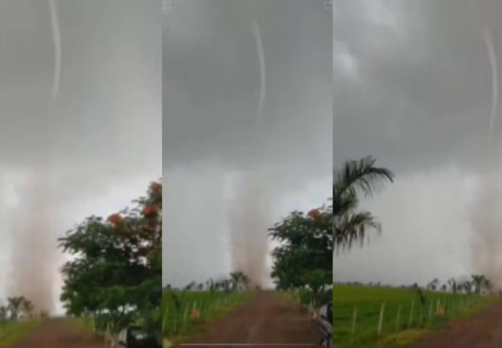 Mas não foi só a chuva forte que chamou a atenção. Imagens de um suposto tornado circularam nas redes sociais nesta manhã. O fenômeno foi registrado nas proximidades dos municípios Manduri e Águas de Santa Bárbara na tarde do domingo (23). Veja abaixo as imagens: