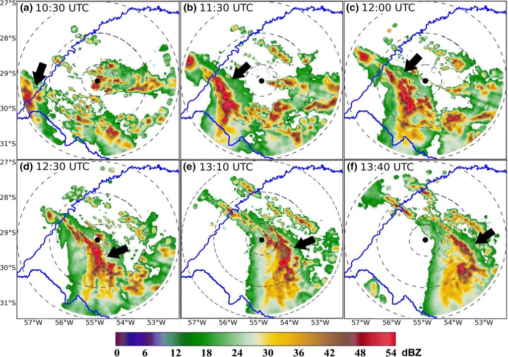 O trabalho explora as tempestades ocorridas em 29 de maio de 2013 e nos dias 18 e 19 de outubro de 2014, detectadas pelo radar localizado na cidade de Santiago. Essas tempestades foram identificadas pelo radar graças ao formato característico que apresentam nas imagens de radar, o chamado bow echo, o eco de retorno do radar em formato de arco.