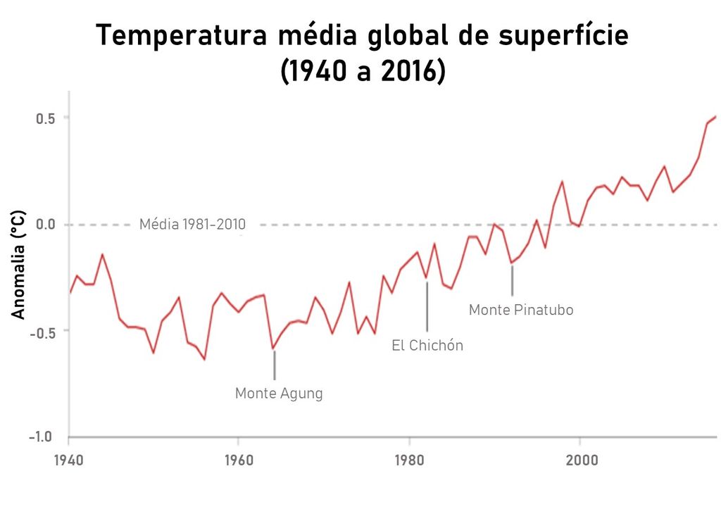 Felizmente, a paleoclimatologia nos oferece uma solução, já que através de anéis de árvores e fósseis os cientistas conseguem coletar dados climáticos de centenas a milhares de anos atrás! Um estudo de paleoclima (Li et al., 2013) que usou dados oriundos de anéis de árvores de várias regiões do planeta, reconstruiu o histórico de ENOS de 2005 ao ano de 1301 e revelou que após grandes erupções vulcânicas nos trópicos (22 eventos foram identificados) as temperaturas oceânicas e globais esfriaram imediatamente após a erupção e, no ano seguinte, houve um aquecimento do Pacífico Tropical. Estes resultados sustentam as relações encontradas pelos modelos climáticos!