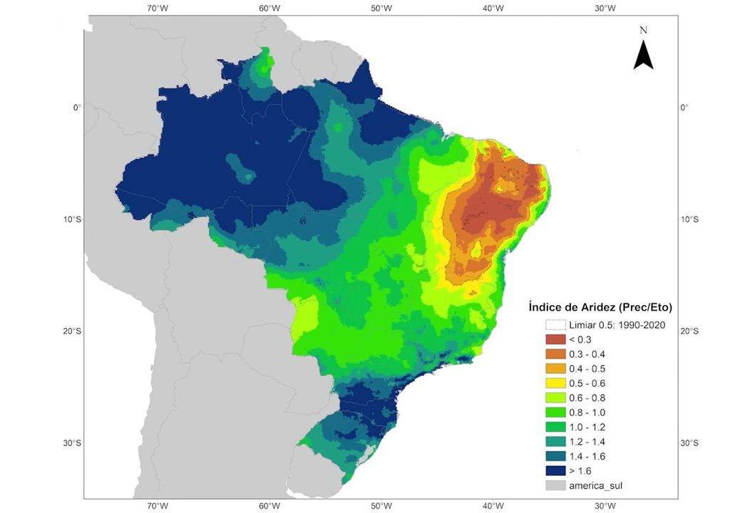 Nesses estudos os pesquisadores utilizaram 30 anos (de 1990 a 2020) de dados de chuva e evaporação para calcular o índice de aridez, utilizado pela Convenção das Nações Unidas para o Combate à Desertificação (UNCCD, na sigla em inglês). Esse índice determina o grau de aridez de uma região, baseando-se na quantidade de água disponível e a demanda de água necessária para sustentar a vida nessa região, algo que pode ser estimado pela razão entre precipitação e evapotranspiração.