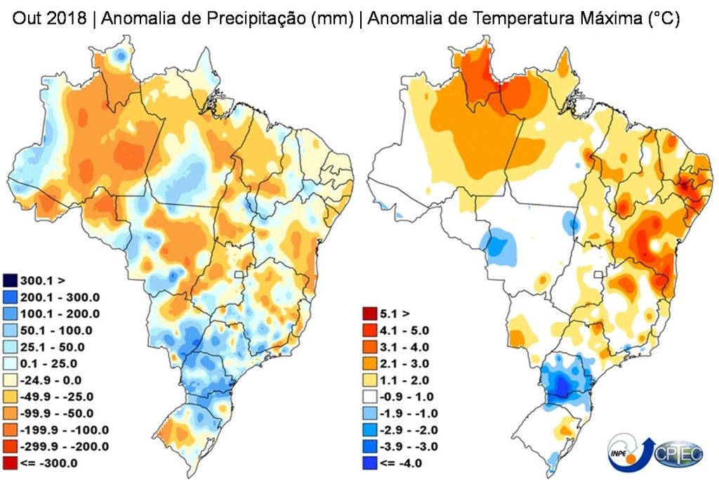 De forma geral a distribuição das chuvas pelo país ficou dentro do esperado para o mês, com chuvas ocorrendo desde o Norte ao Sul do Brasil. No Centro-Oeste e Sudeste, se observa um padrão de chuvas mais irregulares na maior parte dessas regiões, no entanto, os estado de São Paulo e do Mato Grosso do Sul, a distribuição das chuvas foi mais homogênea, com volumes superando em até 200 mm do esperado para mês.