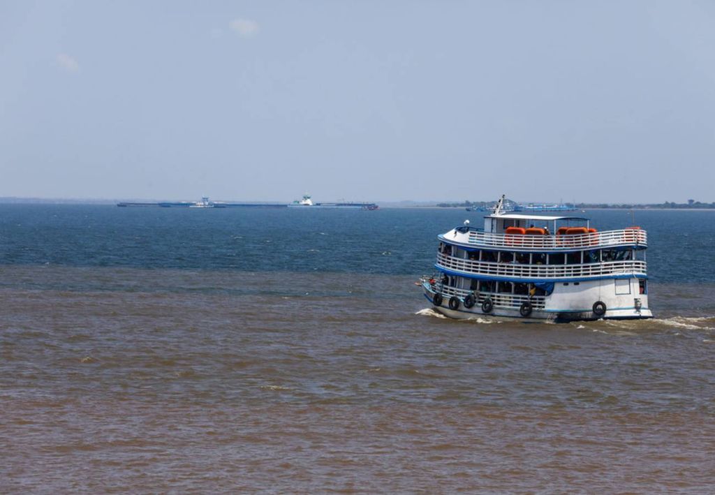 É possível ver a nítida diferença de cada um dos rios: as águas barrentas do Amazonas, que se juntam à tonalidade de azul profundo do Tapajós em um cenário fantástico.