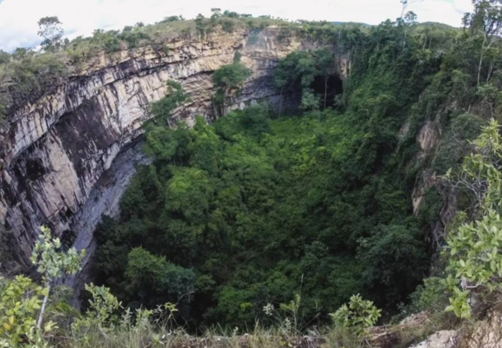 A Caverna Escaroba é outro atrativo natural incrível em Formosa. Ela é acessada apenas de rapel, descendo uma claraboia, mas o esforço é compensado pela beleza das formações rochosas e uma pequena queda d’água em seu interior.