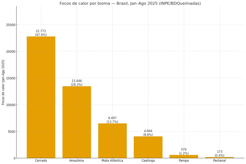 O contraste chama atenção porque mexe com biomas inteiros e com a economia do campo. Em agosto, o Cerrado liderou a área queimada do mês, enquanto a Amazônia reduziu bastante na comparação com 2024; no acumulado do ano, o Cerrado também concentrou a maior fatia dos focos.