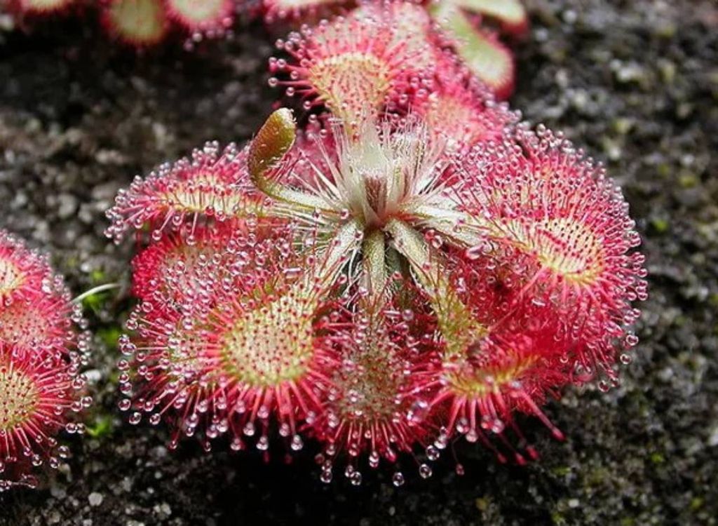 Suas folhas são carnudas e cobertas por glândulas pegajosas que atraem e digerem pequenos insetos, um sistema semelhante ao das Droseras.
