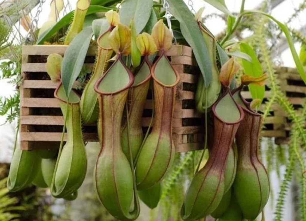 A Nepenthes é um pouco maior que as espécies anteriores; têm folhas modificadas em formato de jarros que acumulam um líquido digestivo com enzimas que atraem suas presas e as digerem.