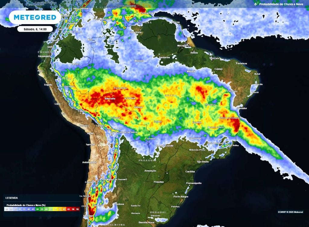 A ZCAS, que já está formada sobre o Brasil Central e deve durar até o domingo (7), favorece áreas de instabilidades entre o sul da Região Norte e o Sudeste do país, o que deixa alertas para altos acumulados de chuva ao longo dos próximos dias nestas regiões.