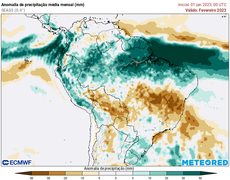 As previsões de longo prazo do modelo europeu ECMWF sugerem que as chuvas reduzirão novamente em Março, que volta a ser um mês seco no Estado com possibilidade de novas estiagens potencialmente prolongadas.