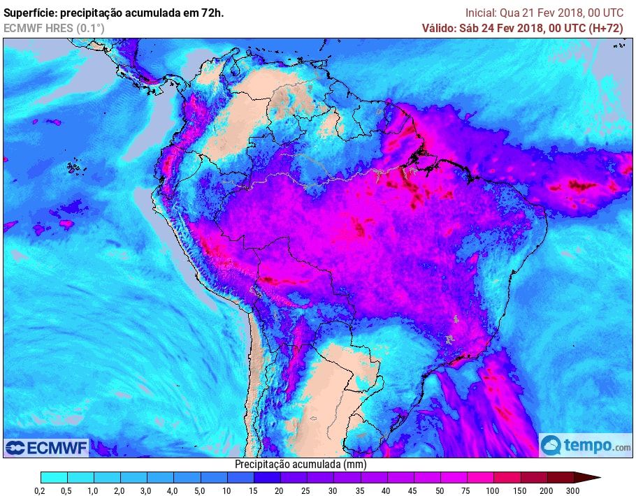 Nos próximos dias a tendência é de tempo mais firme na Região Sul e de chuvas concentradas na metade norte do país. Alerta de temporais no litoral de São Paulo e do Rio de Janeiro.
