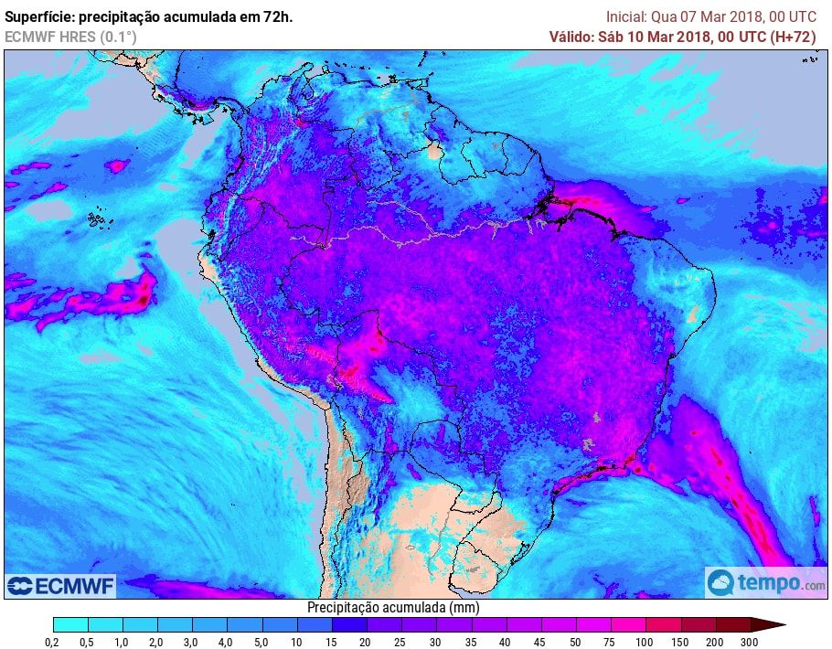 No fim de semana a previsão se mantém, com chuvas concentradas no Centro-Norte do país. Os maiores acumulados são esperados o leste do Sudeste e sul da Bahia. A partir da segunda-feira (12) uma nova frente fria se forma no Uruguai e avança em direção a Região Sul, levando chuva e diminuição da temperatura na próxima semana.