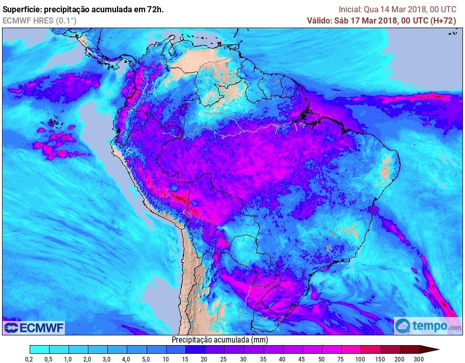 Nas demais regiões a previsão é de pancadas de chuva isoladas. No entanto, em algumas áreas a chuva ocorre de forma mais intensa trazendo potencial para temporais. Alerta de chuva forte para esta tarde em todo o leste paulista e sul do Rio de Janeiro, sul da Bahia e norte de Minas Gerais e para os estados do Mato Grosso, Goiás e Pará.