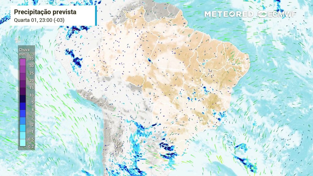 No entanto, resquícios da circulação da frente fria associados à um corredor de umidade ainda estarão causando chuvas no restante do Sudeste e do Centro-Oeste durante o sábado (04) e o domingo (05). Isso inclui Estados como Mato Grosso, Goiás, Minas Gerais, Espírito Santo e Rio de Janeiro.