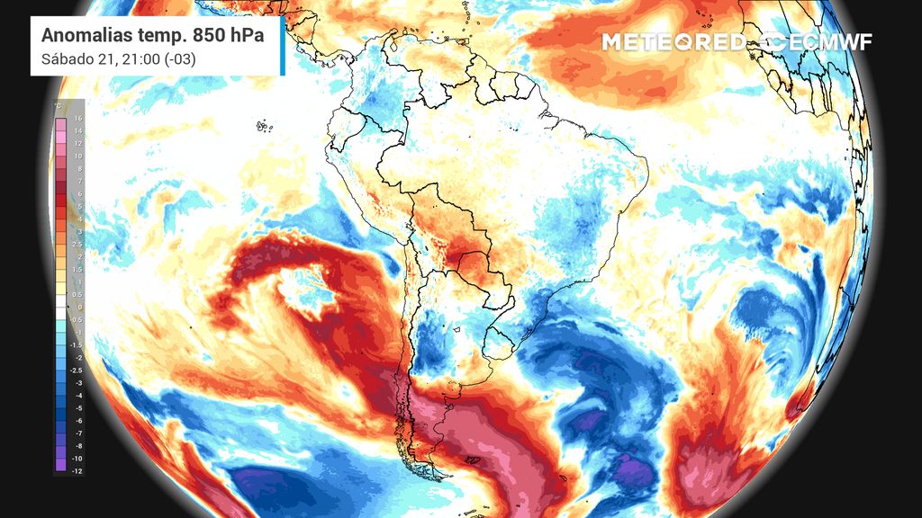 Contudo, a partir do fim de semana, uma nova massa de ar frio ingressa nestas regiões, diminuindo as temperaturas. Não será uma massa intensa, contudo, ela trará um alívio ao calorão dos últimos dias ao deixar as temperaturas mais amenas em parte dessas regiões.