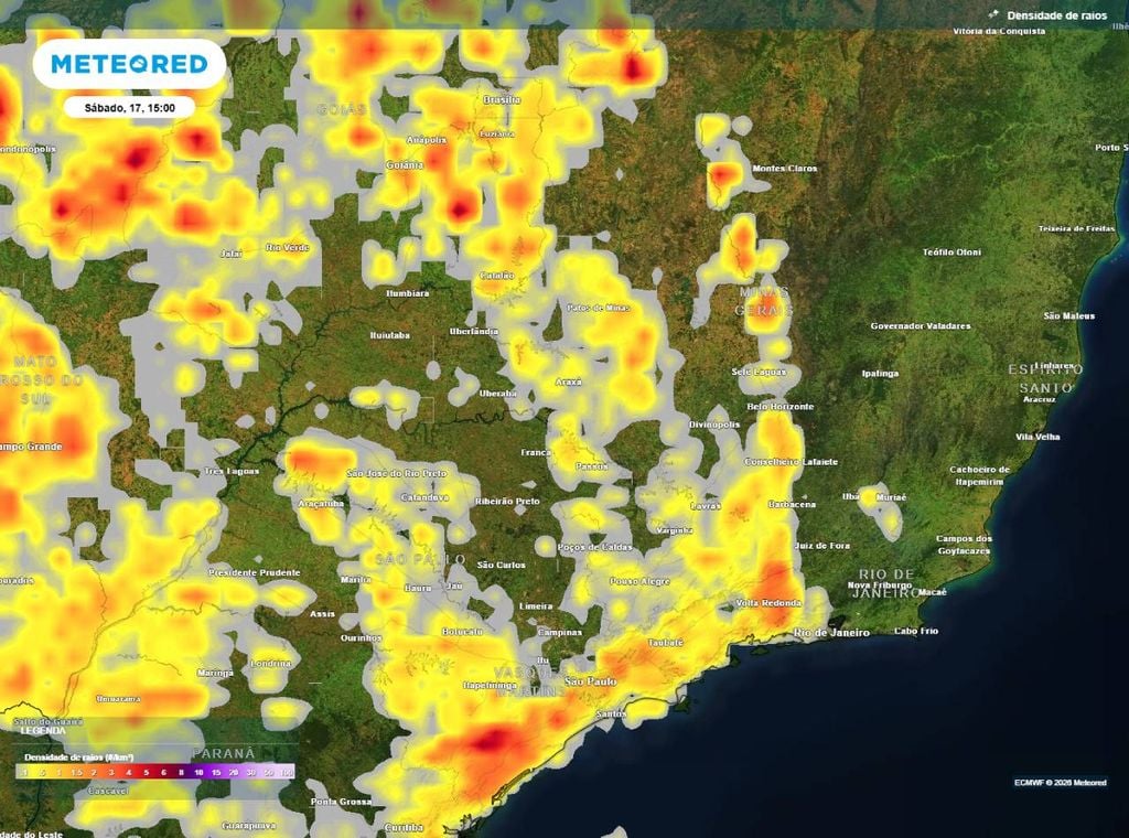 Durante as tardes, as instabilidades ganham intensidade e são esperadas chuvas, tempestades e descargas elétricas em todo São Paulo, centro-sul de Minas Gerais e sul do Rio de Janeiro (incluindo o sul fluminense e a região metropolitana da capital). Essas chuvas podem ser localmente intensas em algumas áreas e não se descarta a ocorrência de granizo isolado.
