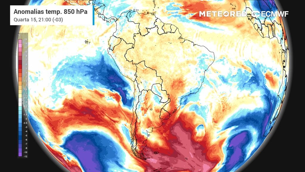 Contudo, no próximo sábado, um novo ciclone que estará formado sobre o oceano, entre a costa do Uruguai e do Rio Grande do Sul, vai ajudar a aumentar o escoamento de norte/nordeste e, dessa forma, contribuir para a formação de pancadas de chuva na região, especialmente nos estados paulista e carioca. Além disso, o sistema também favorece ainda mais a elevação das temperaturas no fim de semana.