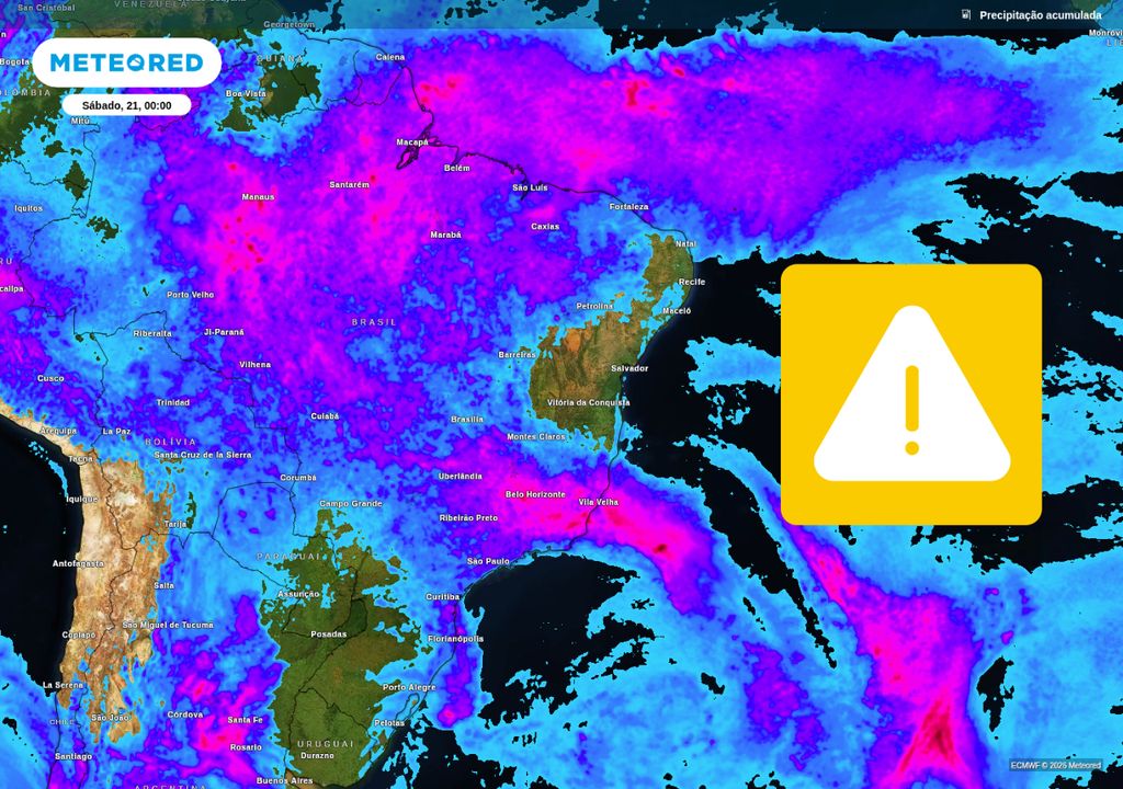 Por outro lado, áreas como o norte do Rio de Janeiro, sul do Espírito Santo, leste de Minas Gerais, leste de Goiás, além do sul e oeste do Mato Grosso, apresentam maior risco de chuvas intensas, com potencial para alagamentos, deslizamentos de terra, transbordamentos de rios e queda de árvores.