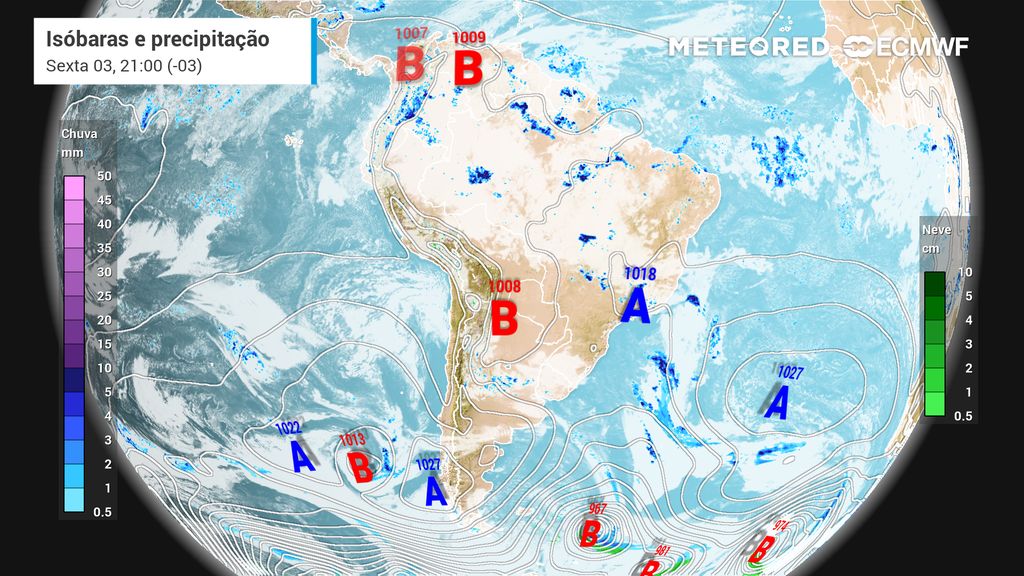 O Vórtice Ciclônico de Altos Níveis (VCAN) continua influenciando o tempo sobre o centro-sul do Brasil. Nesta quinta-feira (2), o sistema avança em direção ao Oceano Atlântico, mantendo suas bordas sobre as regiões Sul e Sudeste, condição que favorece a formação de nuvens carregadas e pancadas de chuva.