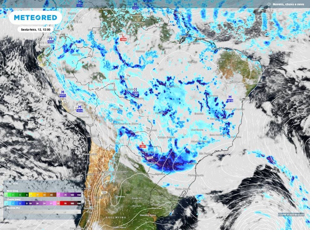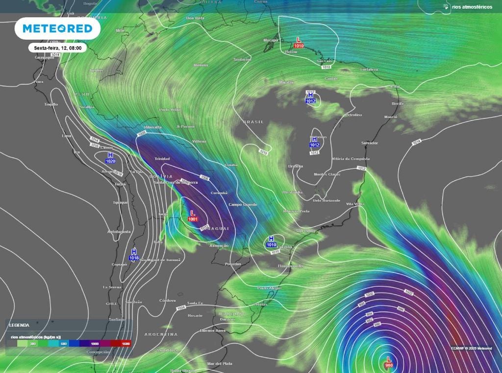 Contudo, a partir da sexta-feira (12) de manhã, um fluxo de umidade proveniente da Região Norte em direção ao Sul do país vai novamente aumentar as condições para chuvas intensas na região, trazendo altos volumes em um curto período de tempo e tempestades isoladas.