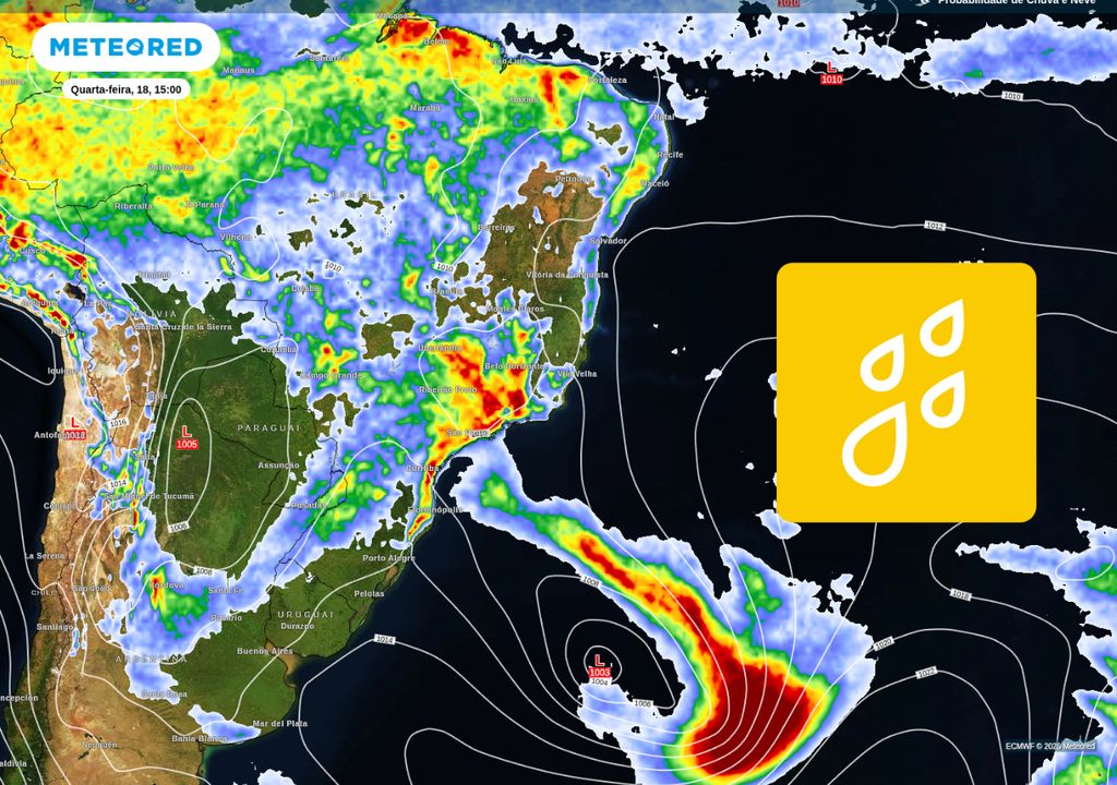 A mudança no padrão atmosférico também altera o tempo sobre a Região Sul. Com o corredor de umidade se deslocando para o Sudeste e o Centro-Oeste, o Sul começa a registrar uma diminuição das chuvas que vinham ocorrendo nos últimos dias e que provocaram diversos transtornos, do Rio Grande do Sul ao Paraná.
