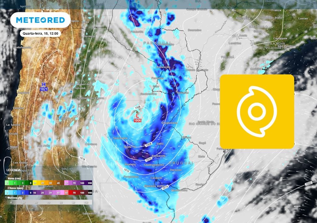Ao longo da terça-feira (14), um cavado (região de baixa pressão) começará a se formar entre o norte da Argentina e o Paraguai, formando tempestades localmente fortes nestes países. Esse sistema continuará se aprofundando e, ao longo da quarta-feira (15), se transformará em um ciclone.