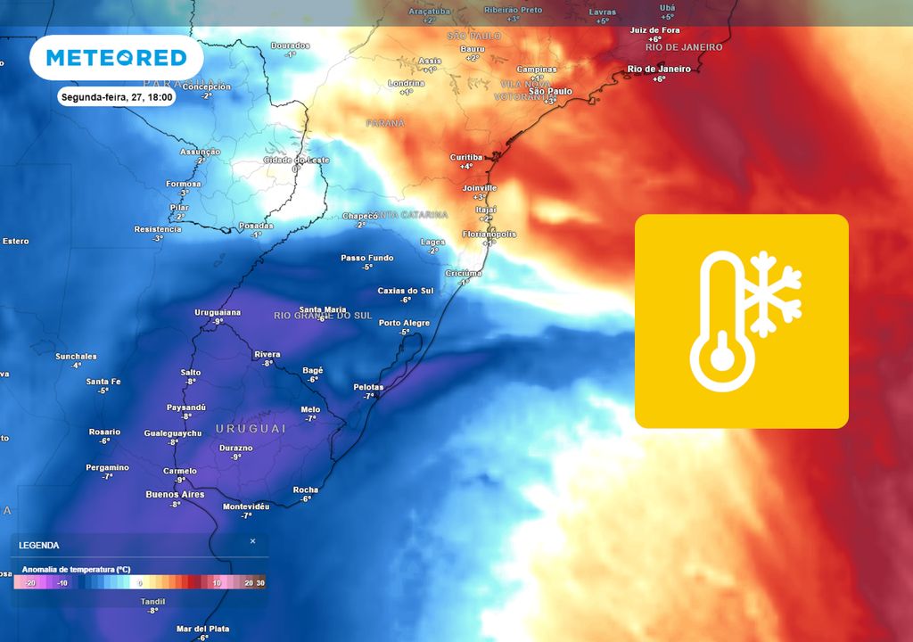 Novamente, não se descarta a possibilidade de que, pontualmente, as temperaturas atinjam valores próximos dos 0°C ou até mesmo valores negativos, especialmente na região serrana do Rio Grande do Sul e de Santa Catarina.