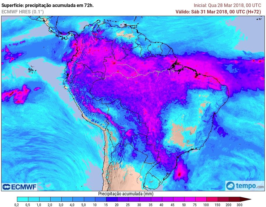No fim de semana se observará a mesma configuração dos sistemas atuantes no Brasil. No sábado (31), o tempo continua nublado e com chuva em todo o estado do PR e de SC, com chuvas mais intensas ocorrendo a partir da tarde e maiores volumes na faixa leste catarinense. No RS passa a chover em todo o estado. O tempo fica nublado e com chuva ao longo do dia no norte e faixa leste, e nas demais áreas o sol aparece entre muitas nuvens, com previsão de pancadas isoladas a partir da tarde.