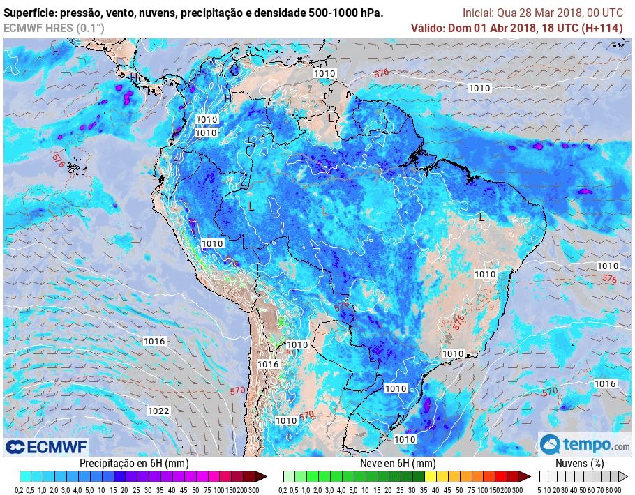 No domingo de Páscoa (01), um ciclone começa a se formar próximo a costa do RS e de SC, e toda a Região Sul amanhece com tempo nublado e chuva fraca a moderada intensidade. As condições mais instáveis ficam para o leste e sul do estado gaúcho. No decorrer do dia o sistema se desloca para o oceano, mas mantém as chuvas em todo o Sul.