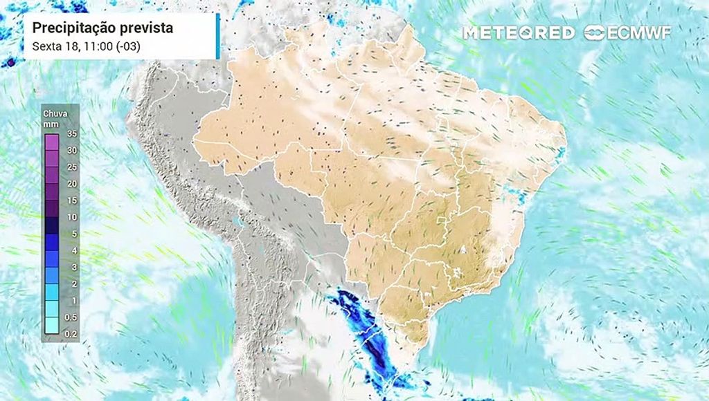 A entrada da massa de ar frio também vai atingir o Mato Grosso do Sul, fazendo com que as temperaturas caiam durante o fim de semana. Nos demais Estados, no entanto, o tempo permanece quente e ensolarado, atingindo temperaturas similares aos dias anteriores.