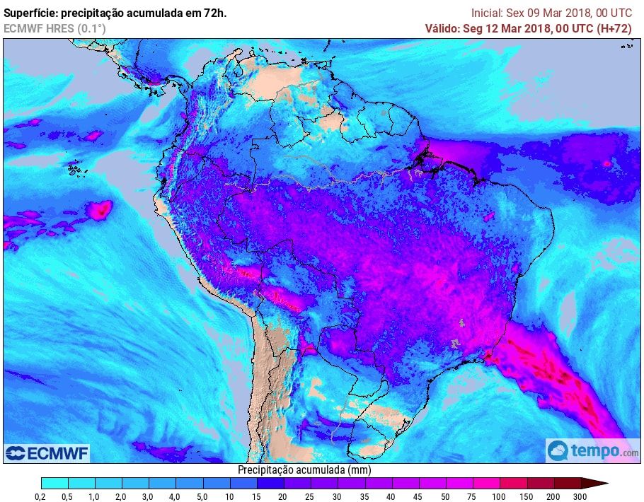 Fim de semana com ZCAS e muita chuva em boa parte do Brasil