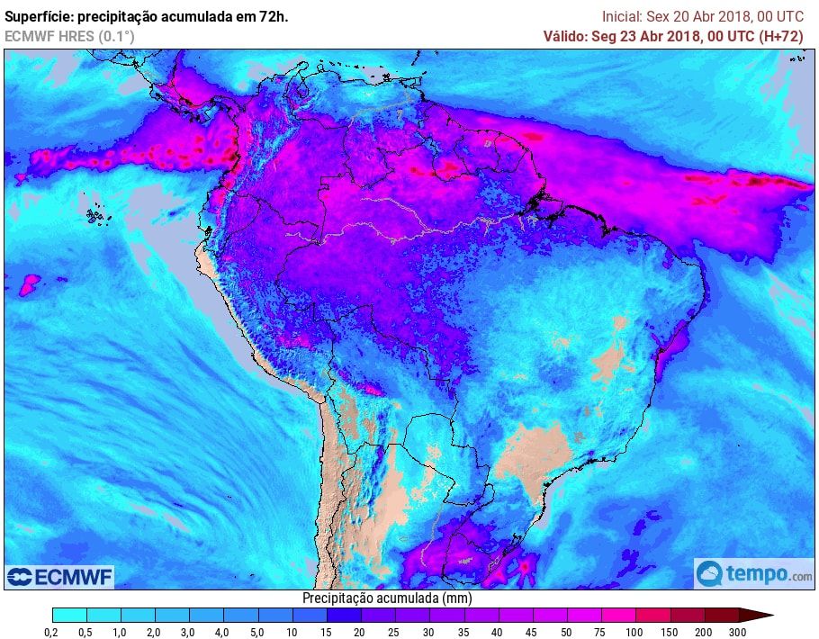 O deslocamento da massa de ar seco mais ao norte e para o oceano, e uma condição mais instável entre a Argentina e o Uruguai, favorecem a formação de nuvens carregadas nessa região, mas não ao avanço pelo Sul do Brasil. Já no litoral norte e leste do Nordeste, as chuvas aumentam de intensidade.
