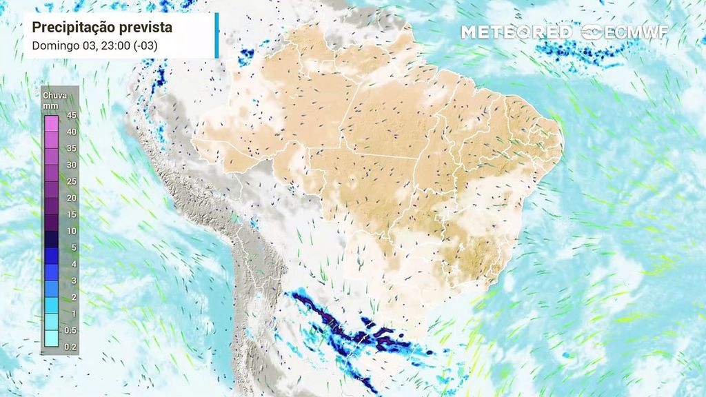 Chuvas mais pontuais e de curta duração podem atingir o nordeste de São Paulo, o sul do Rio de Janeiro e o extremo sul de Minas Gerais.