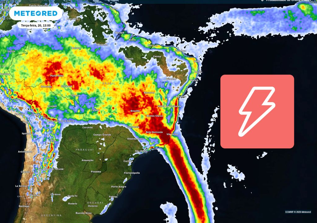 A terça-feira (20) será marcada por chuvas intensas e chances de tempestades em diversos estados do país. O avanço da frente fria deve provocar fortes instabilidades sobre o Sudeste já nas primeiras horas do dia.