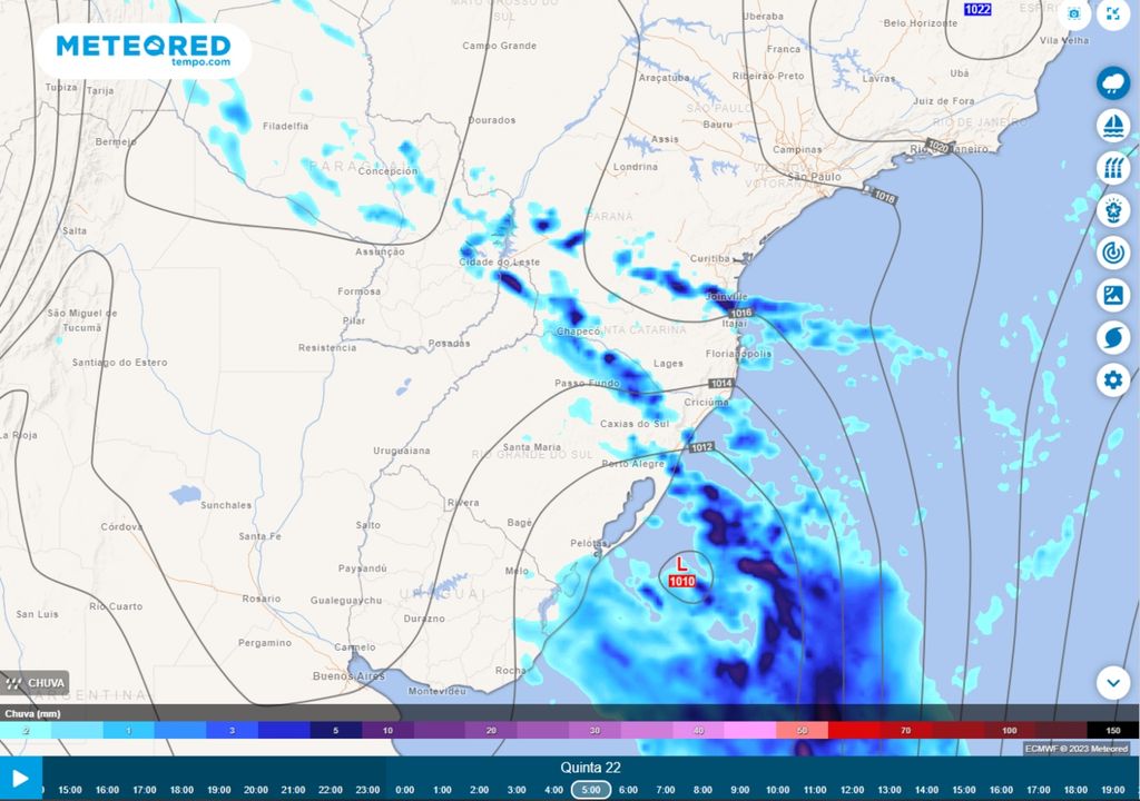 Para o Sul o calor demorará um pouco mais para aparecer, isso porque um outro ciclone deverá se formar próximo a costa da região entre quarta e quinta-feira (22), o que provocará chuvas generalizadas e um aumento da nebulosidade na região até sexta-feira (23). Esse ciclone não será tão intenso quanto o seu antecessor, que causou muitos estragos e prejuízos, mas de qualquer forma a região Sul deve permanecer em alerta devido às chuvas.