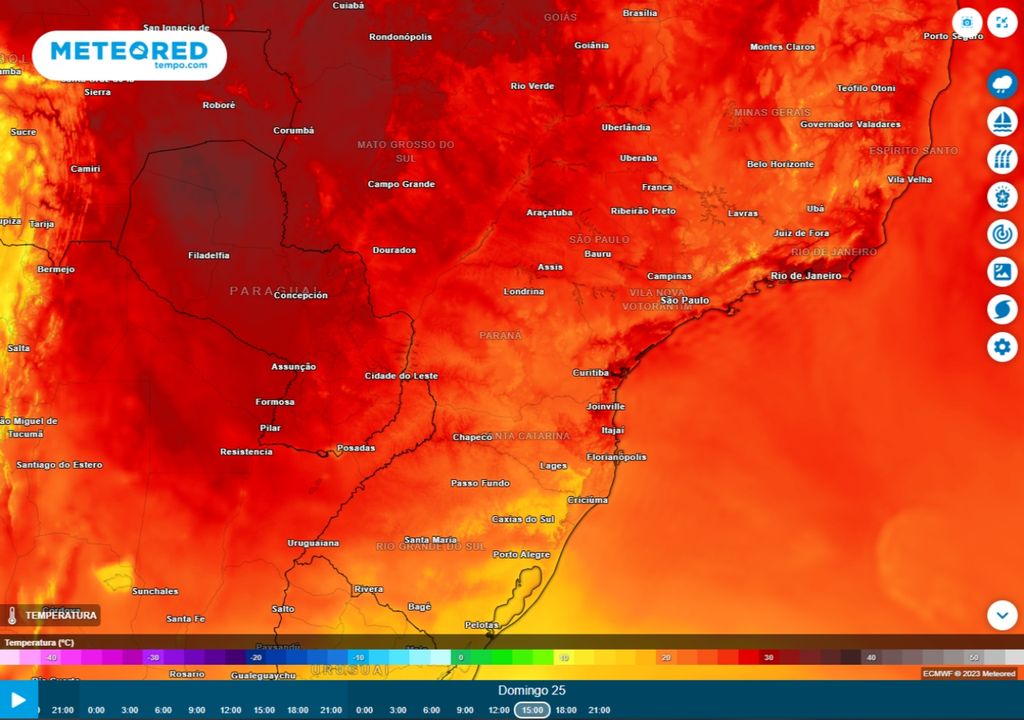 Esse calor deverá permanecer no início da próxima semana sobre o Centro-sul, porém, uma nova virada do tempo está prevista para partes dessa região em meados da próxima semana. Para saber mais, fique atento às nossas previsões!