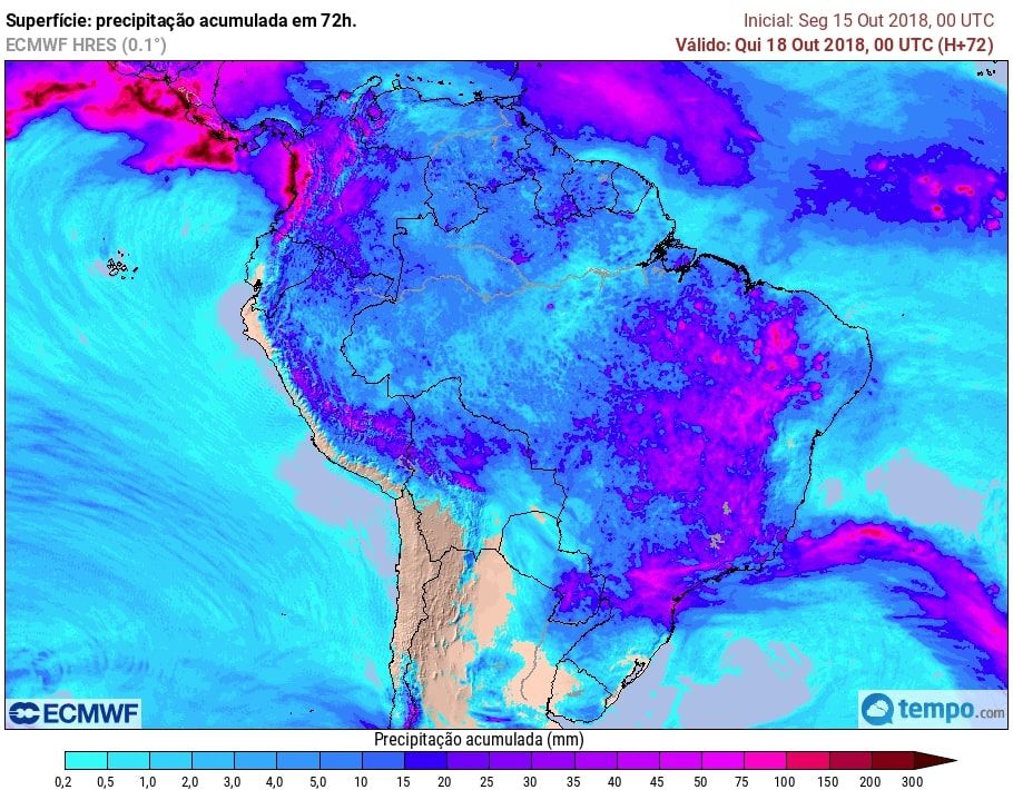 A combinação do avanço de uma frente fria até o sul da Bahia e da oscilação de Madden-Julian, contribui para uma semana mais úmida nas regiões Centro-Oeste, Sudeste e Nordeste. Já no Rio Grande do Sul, as chuvas diminuem bastante, porém, nos demais estados do Sul, as condições se mantêm favoráveis a ocorrência de temporais.