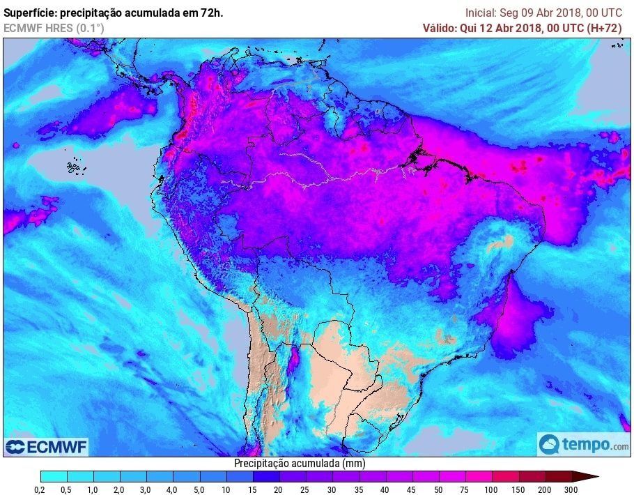 Já no Norte e Nordeste é onde são esperados os maiores volumes. A atuação da ZCIT no litoral norte do país contribui para o tempo instável e chuva a qualquer hora do dia, que se desloca da costa em direção ao interior, provocando chuva forte nas áreas próximas de Teresina e Juazeiro do Norte. Na costa leste de Nordeste, os ventos que sopram do oceano deixam o tempo nublado e chuvoso de Porto Seguro a Salvador e, de Recife a Natal.