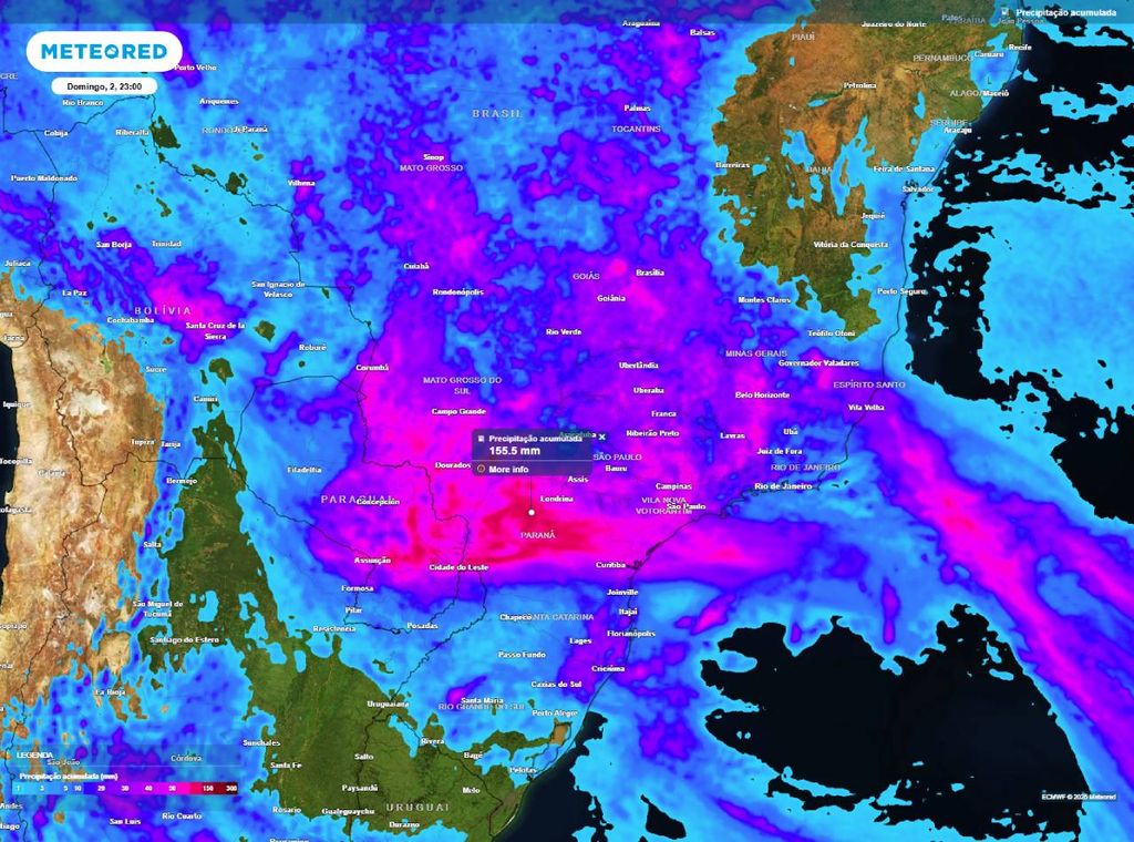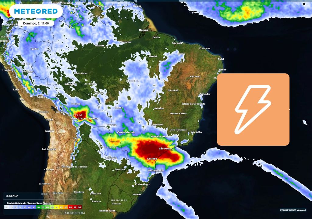 Já na madrugada do domingo (2), as instabilidades novamente ganham força no Paraná e são esperadas chuvas de até forte intensidade ao longo do dia e com risco de tempestades localizadas, especialmente no período da manhã. No Rio Grande do Sul e em Santa Catarina, chuvas fracas e isoladas ao longo do dia, mas com chance de pancadas à tarde no nordeste gaúcho e no sul catarinense.