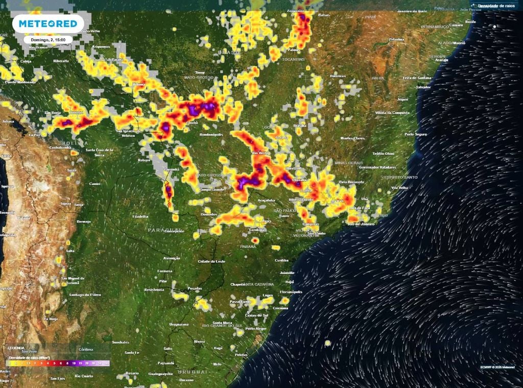 No domingo (2), chove em todo o estado de São Paulo, ainda com risco de tempestades e chuvas pontualmente intensas, principalmente a partir da tarde. E a partir da tarde, inclusive, são esperadas chuvas intensas e tempestades também no sul do Rio de Janeiro e em grande parte de Minas Gerais.