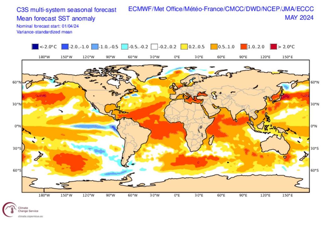 De qualquer forma, o grande modulador do clima do Brasil continua sendo o Oceano Atlântico tropical, que tem estado muito mais quente que o normal e os modelos apontam a continuidade desse calor anômalo em maio. Essas altas temperaturas do Atlântico tropical tem servido como combustível para a convecção da Zona de Convergência Intertropical (ZCIT), que nessa época provoca muitas chuvas no Norte e Nordeste do Brasil.