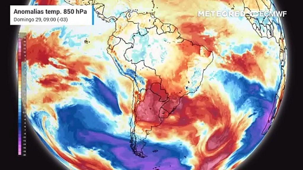 Com a formação da frente fria, os ventos de norte passam a atuar de forma mais efetiva, transportando o ar quente do centro-norte do Brasil para o centro-sul do país. Assim, na segunda-feira (30), as temperaturas ficam elevadas em praticamente todo centro-sul do Brasil, com sensação mais apenas somente no leste de Santa Catarina e no litoral do Paraná. As temperaturas máximas variam de 28 a 35°C nas demais áreas do Sul do Brasil, com previsão de 30°C em Porto Alegre e de 28°C em Curitiba. Em Florianópolis, as máximas ficam em torno dos 24°C.