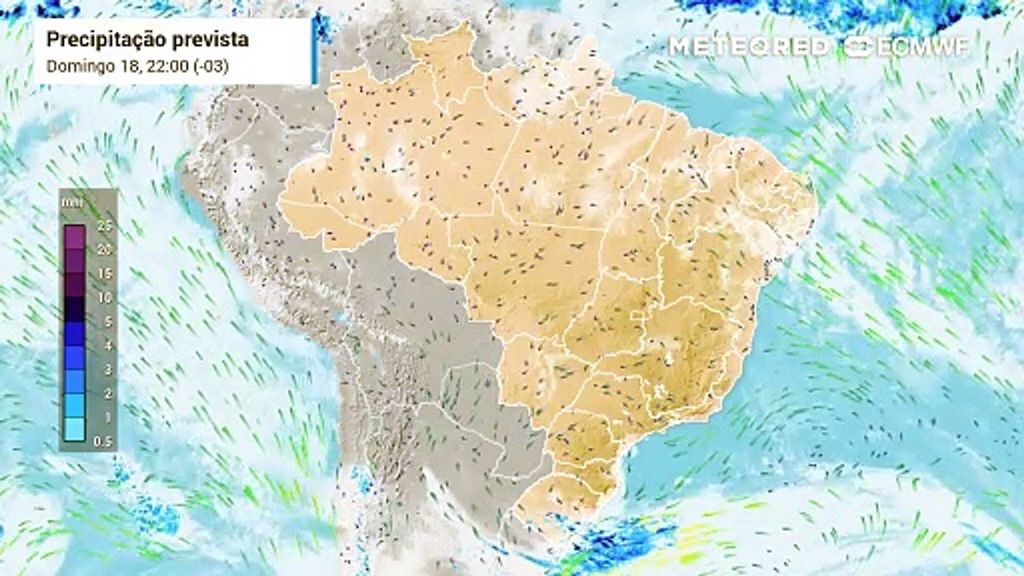 O padrão de bloqueio atmosférico continua atuando e mantém os sistemas transientes de chuva concentrados em parte da Região Sul. Essa condição deve se manter até pelo menos o fim do mês, com avanços tímidos de uma a duas frente frias e massas de ar frio, que influenciam no máximo parte da Região Sul e o leste do Sudeste.