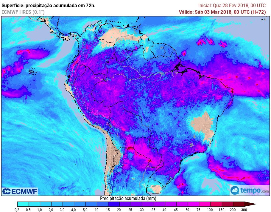 Para o fim de semana a tendência é de que as chuvas aumentem de intensidade no Centro-Sul do país, com maiores acumulados ocorrendo na Região Sul. A partir da próxima semana o tempo volta a ficar mais instável na metade norte, porém ainda chove nas áreas mais ao sul.