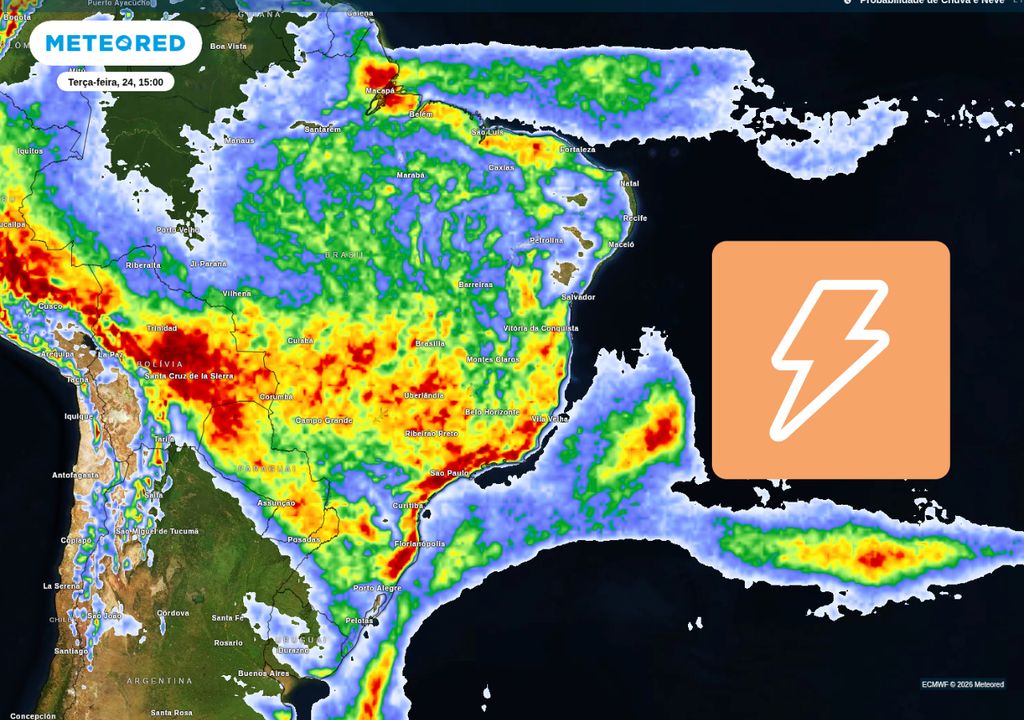 As chuvas se intensificam no Nordeste nesta terça (24). A previsão indica chuvas intensas no oeste, centro e sul da Bahia, deixando a região em alerta. O mesmo vale para diversos municípios do sul do Piauí e Maranhão, onde há grande quantidade de água precipitável disponível, vindo de áreas do Norte do Brasil e também do Atlântico Equatorial.