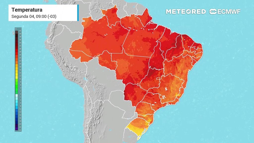 Com o avanço da massa de ar seco e frio, a calmaria se instala sobre o Sul do Brasil com a chuva dando trégua e o frio ganhando intensidade, em que em pleno mês de setembro temperaturas abaixo dos 5°C podem ser registradas, mesmo que de forma pontual como é o caso de Bagé e Santana do Livramento. Apesar da queda acentuada da temperatura, não há chances para ocorrência de geadas visto que ainda haverá presença de nebulosidade durante a próxima madrugada, o que de fato vai impedir que o frio seja mais intenso.